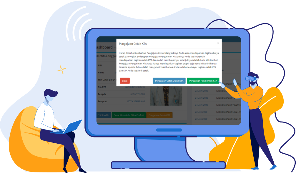 Harap di perhatikan bahwa Anda tidak bisa lanjut ke langkah selanjutnya apabila Admin belum mengkonfirmasi bahwa Anda sudah pernah membayar tagihan cetak KTA dan KTA Anda sudah di cetak. Anda bisa cek di http://ppnidenpasarbali.org/kta-tercetak.